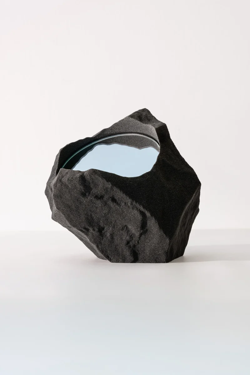 Harnessing the power of 3D scanning, Niederwieser meticulously crafts these stones into functional art pieces. By imbuing them with a distinct purpose, he bestows upon them a tangible value that transcends the mere sentimentality they once held for him. Remarkably, these sculptures are 3D-printed from sand, a medium Niederwieser perceives as nature’s own residue from its endless sculptural processes. He masterfully returns it to a form that mimics its possible natural origins. Every stone is cataloged in a digital database and materialized in a limited edition collection.