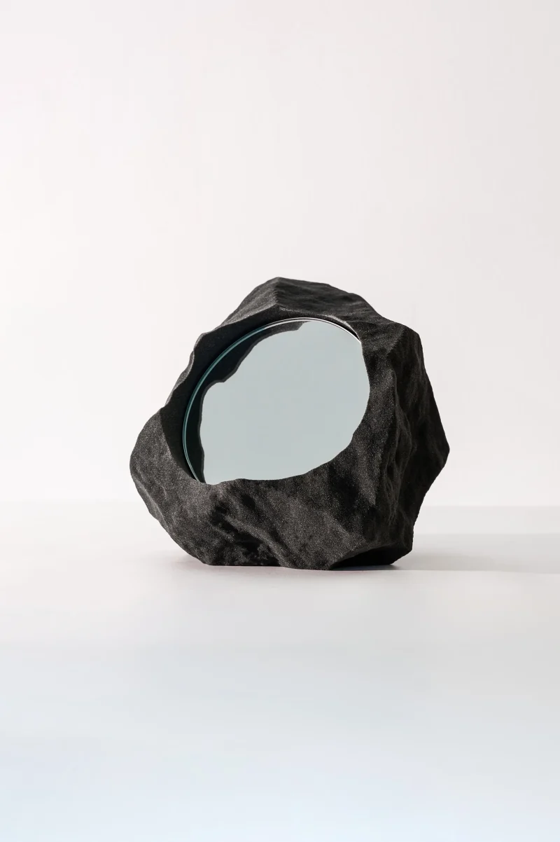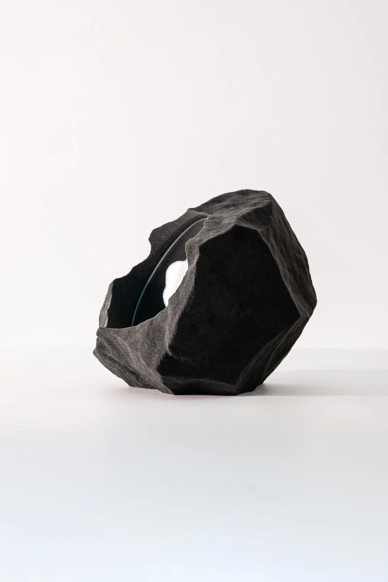 Harnessing the power of 3D scanning, Niederwieser meticulously crafts these stones into functional art pieces. By imbuing them with a distinct purpose, he bestows upon them a tangible value that transcends the mere sentimentality they once held for him. Remarkably, these sculptures are 3D-printed from sand, a medium Niederwieser perceives as nature’s own residue from its endless sculptural processes. He masterfully returns it to a form that mimics its possible natural origins. Every stone is cataloged in a digital database and materialized in a limited edition collection.