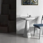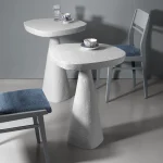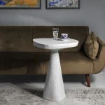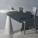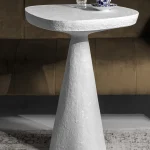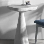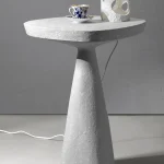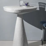 This minimalist table combines simplicity and elegance with its sculptural design and natural material texture. Crafted from a stone-like composite and concrete, it features a raw, organic aesthetic perfect for contemporary or industrial interiors.