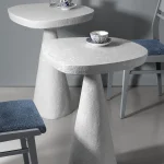 Asymmetrical shapes tabletop is smooth, showcasing natural imperfections that add tactile charm. Its neutral light gray color fits seamlessly with various decor styles, while the compact size makes it ideal for small-scale uses, such as serving coffee or displaying decorative items, or functioning as a side table in a living room or bedroom.