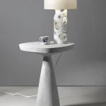 This table is both functional and stylish. Whether used as a coffee table, a side table, or a sculptural accent, its design and neutral tones make it a versatile addition to any home or office.
