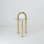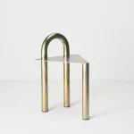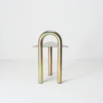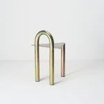A common item in steel houses, the 180º curve is the starting point for the development of the collection. Using this element of industrial origin and organic format, we seek to create affable pieces, which transmit softness incorporated into the rawness of the material. In this version, we further reinforce its origin traces through white and yellow zinc plating, bringing to light this very common finish in the industry, but little appreciated outside of it.