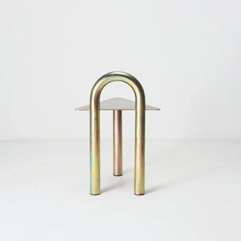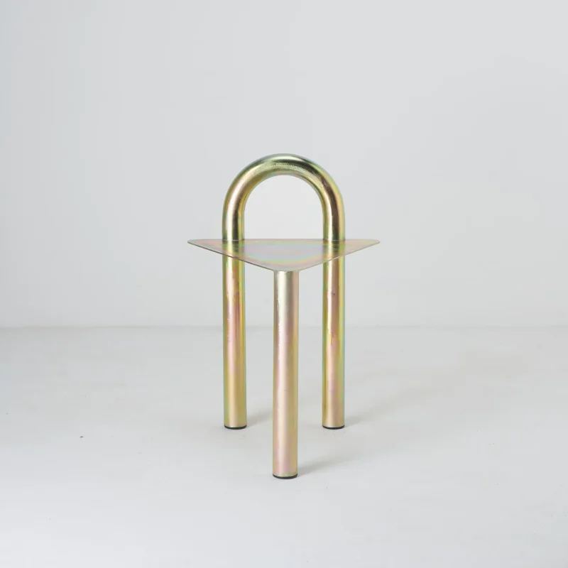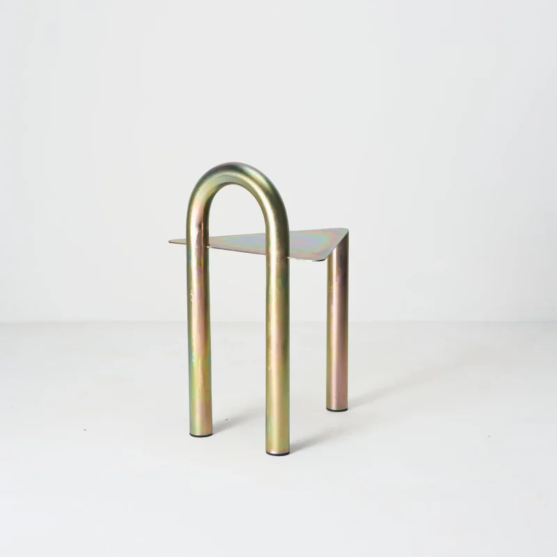A common item in steel houses, the 180º curve is the starting point for the development of the collection. Using this element of industrial origin and organic format, we seek to create affable pieces, which transmit softness incorporated into the rawness of the material. In this version, we further reinforce its origin traces through white and yellow zinc plating, bringing to light this very common finish in the industry, but little appreciated outside of it.