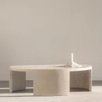 A table with no start and no end. No front nor back. No hierarchy. Just a series of random stops and gaps in an eternal movement. The “Stopgap Low Table” is the result of a failed creative divorce. The Proximity project was the starting point for Andréason & Leibel’s plan to do separate designs to meet on stage. It ended up in one piece significant for their close intertwined design process.