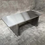 The table top (230x100cm) is integrated into a stainless steel frame attached to both brushed stainless steel legs with a 10cm overhang to the inner connecting plate. this design creates a light and linear visual language.