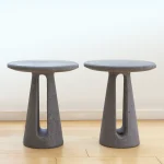 Crafted meticulously from volcanic stone, this side table celebrates the raw power and resilience found in nature’s remarkable formations.