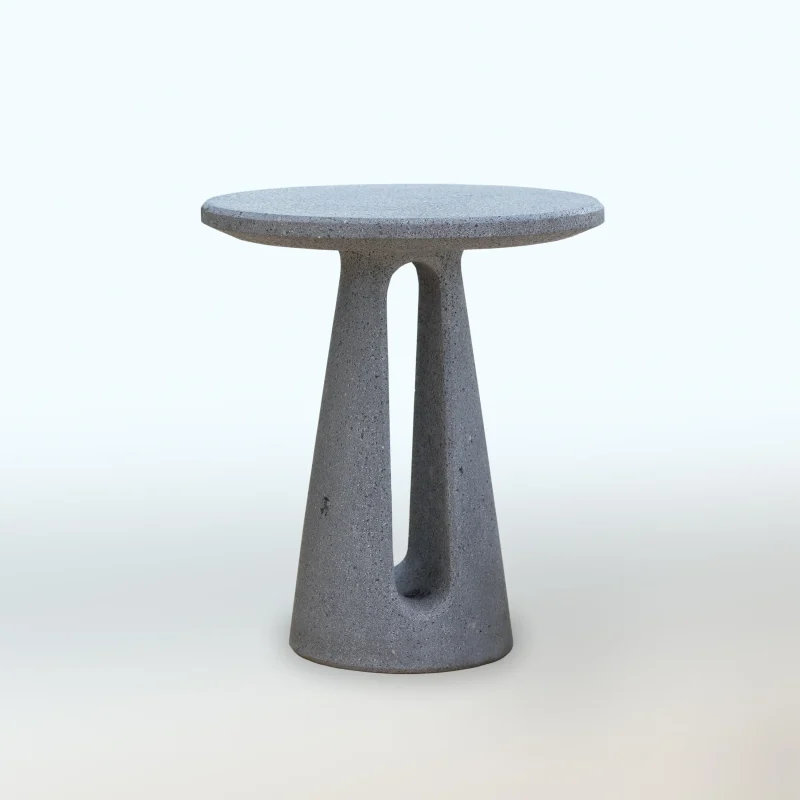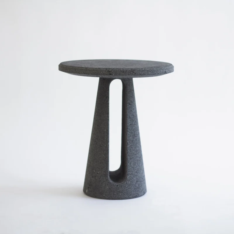 Crafted meticulously from volcanic stone, this side table celebrates the raw power and resilience found in nature’s remarkable formations.