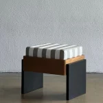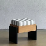 The Striped Ottoman designed by Studio Kallang is expertly crafted from solid teak by skilled Indonesian artisans, and blends traditional craft with modernist forms.