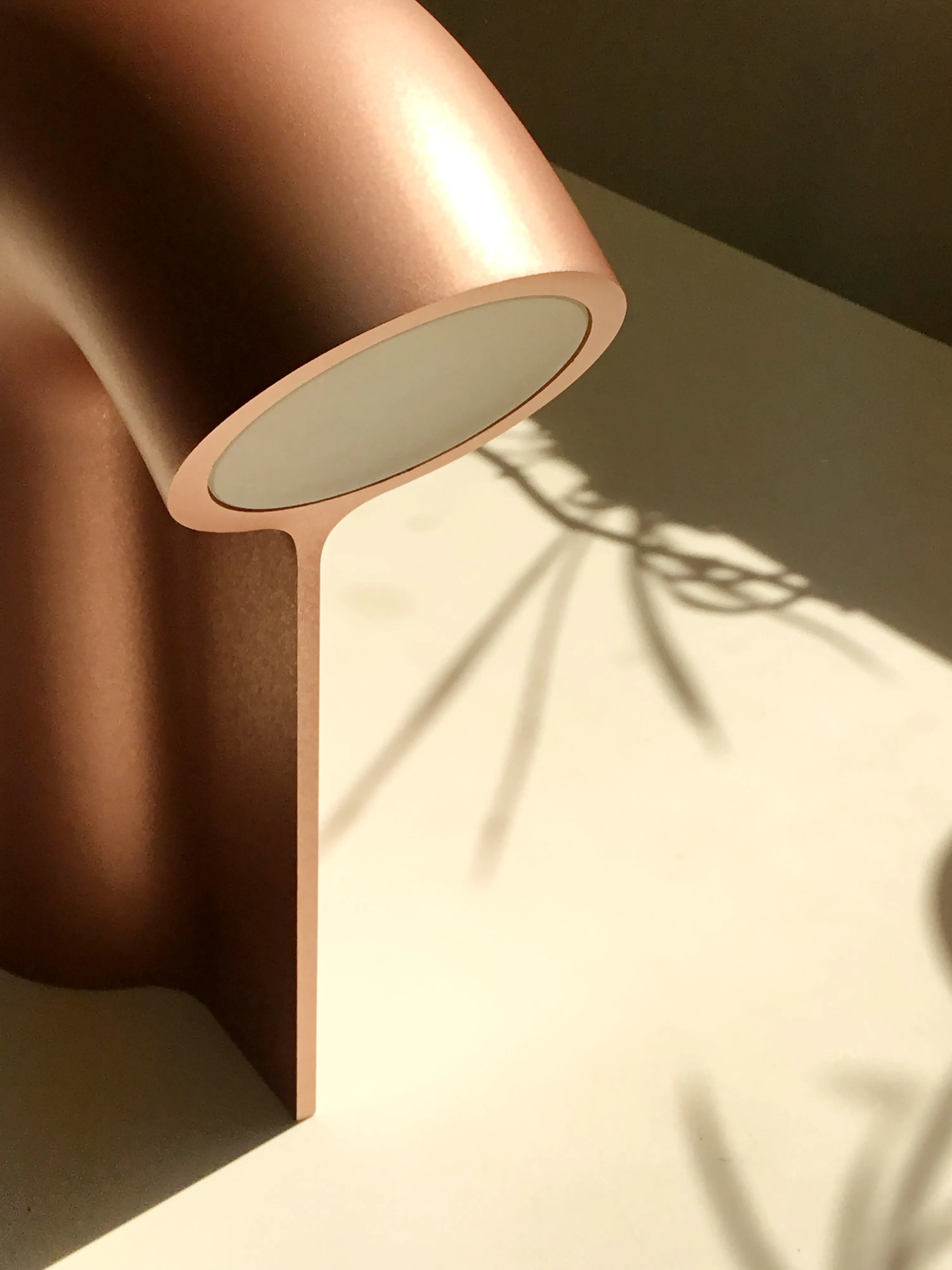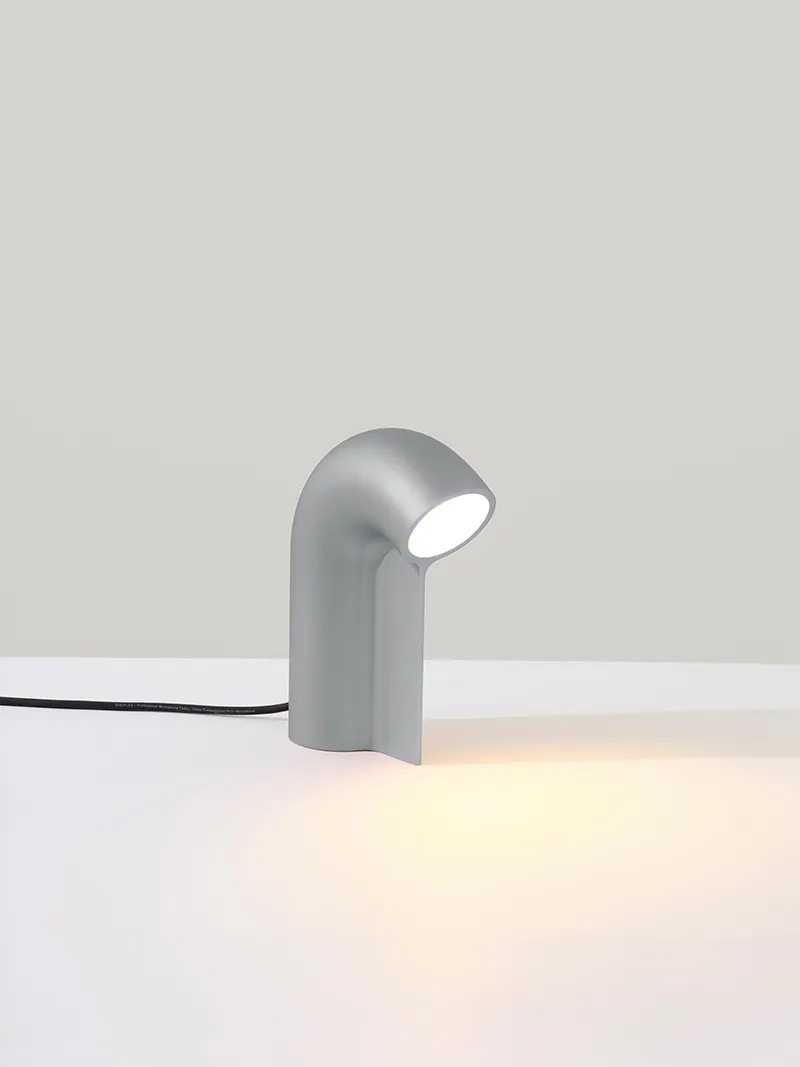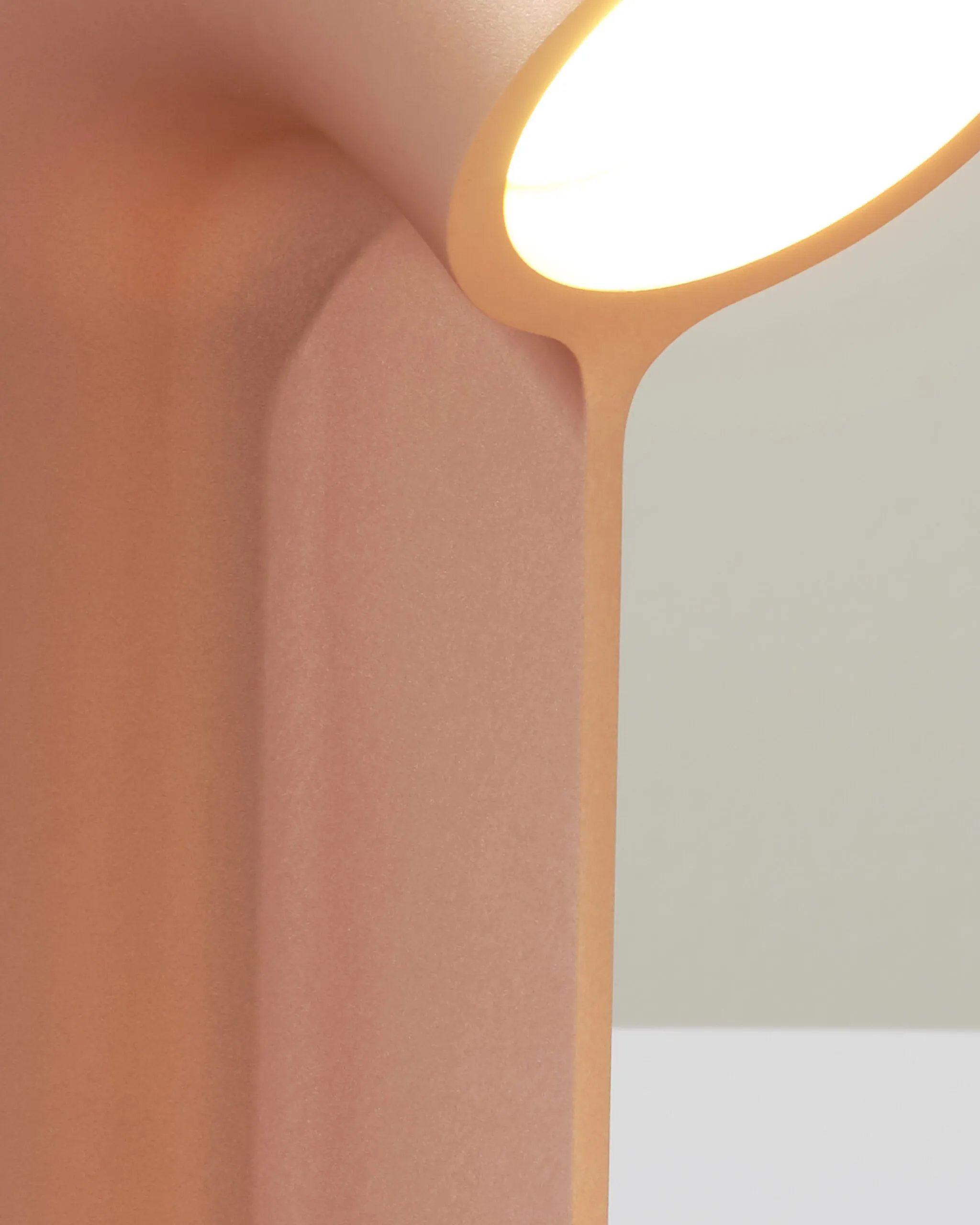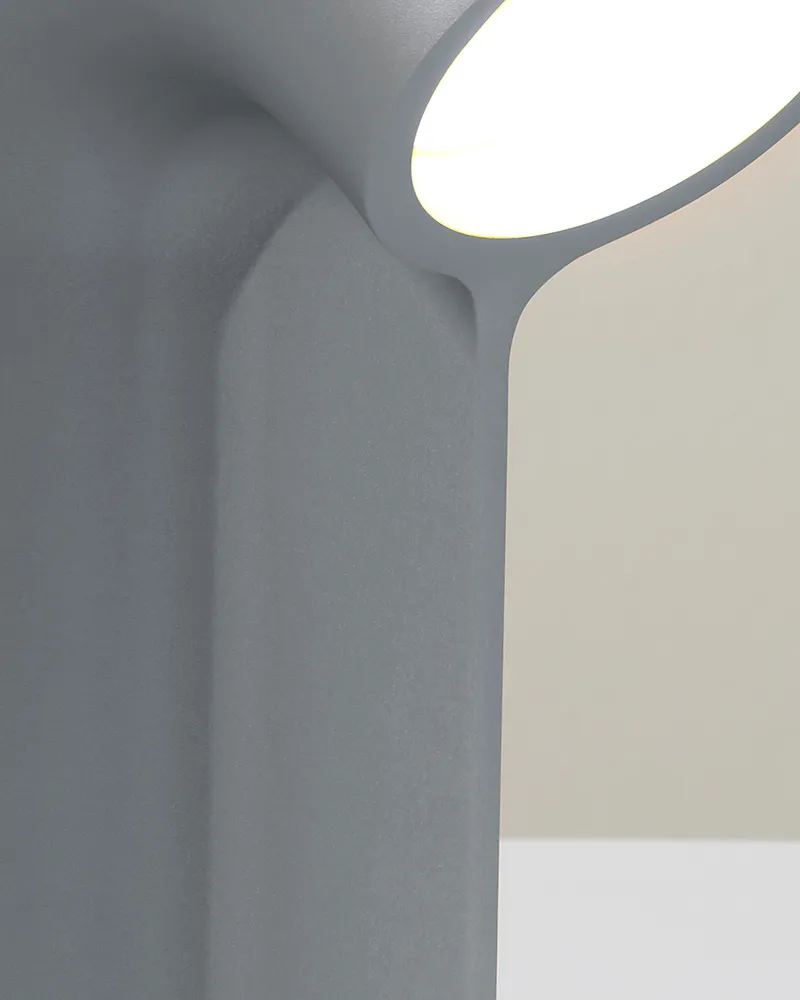 Tactility was premier in the creation of the “Stutter” Light. The “flashing” or support fin functions as a thick delicious tab to pinch and point the light in a direction. The teardrop cross-section of the main body is intended to entice hands and fingers to fondle curves and transitions.