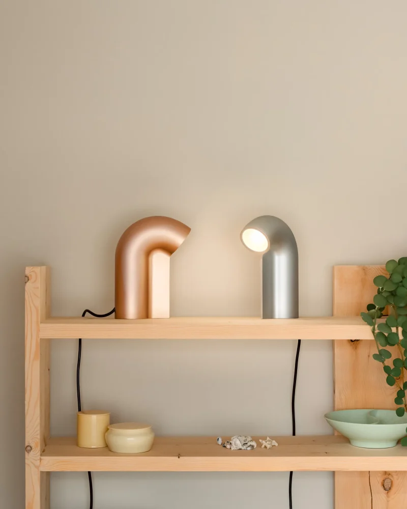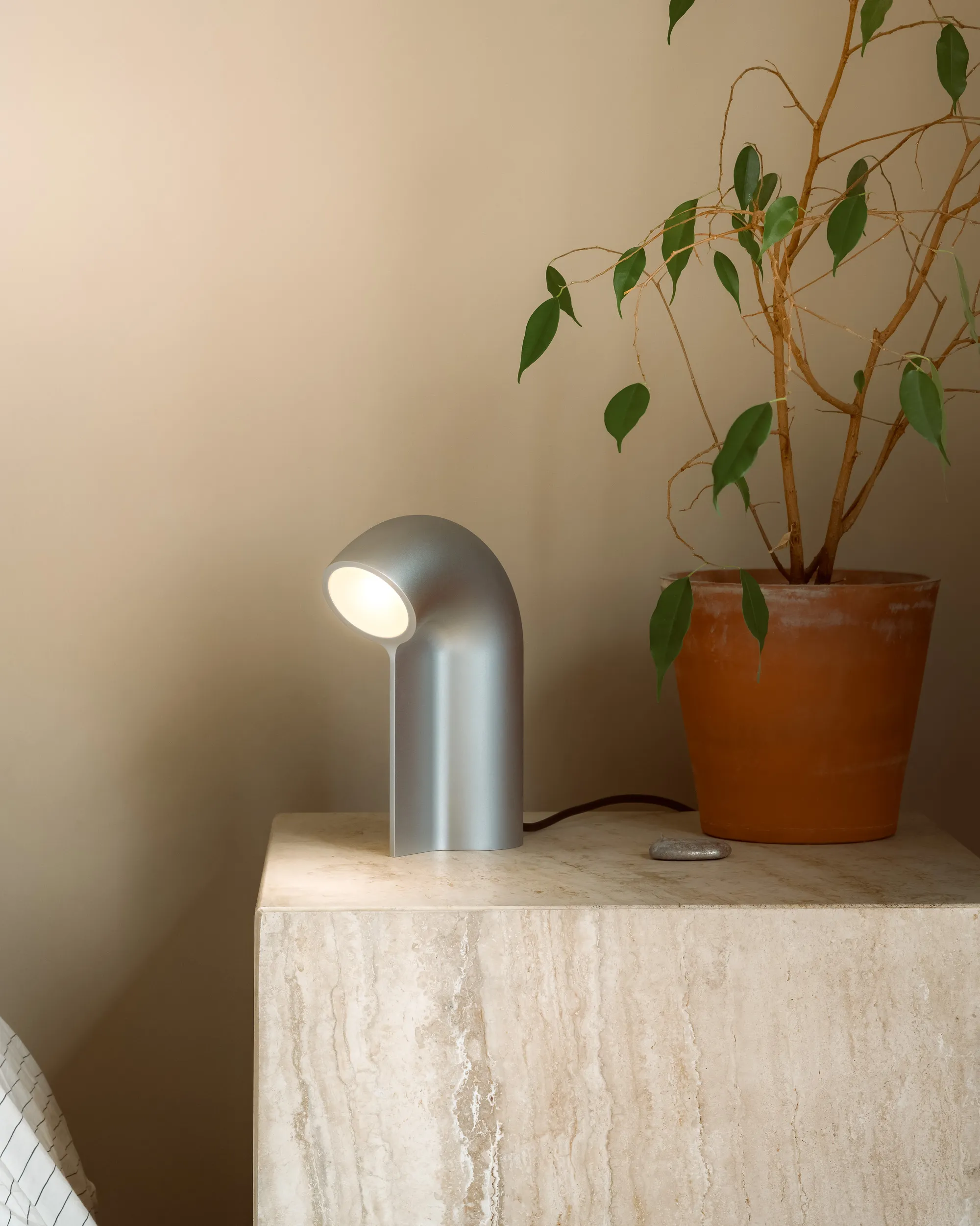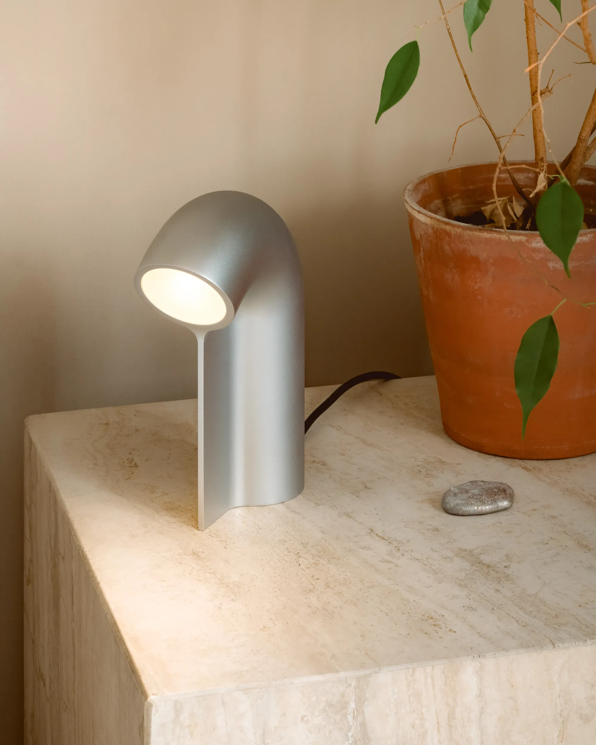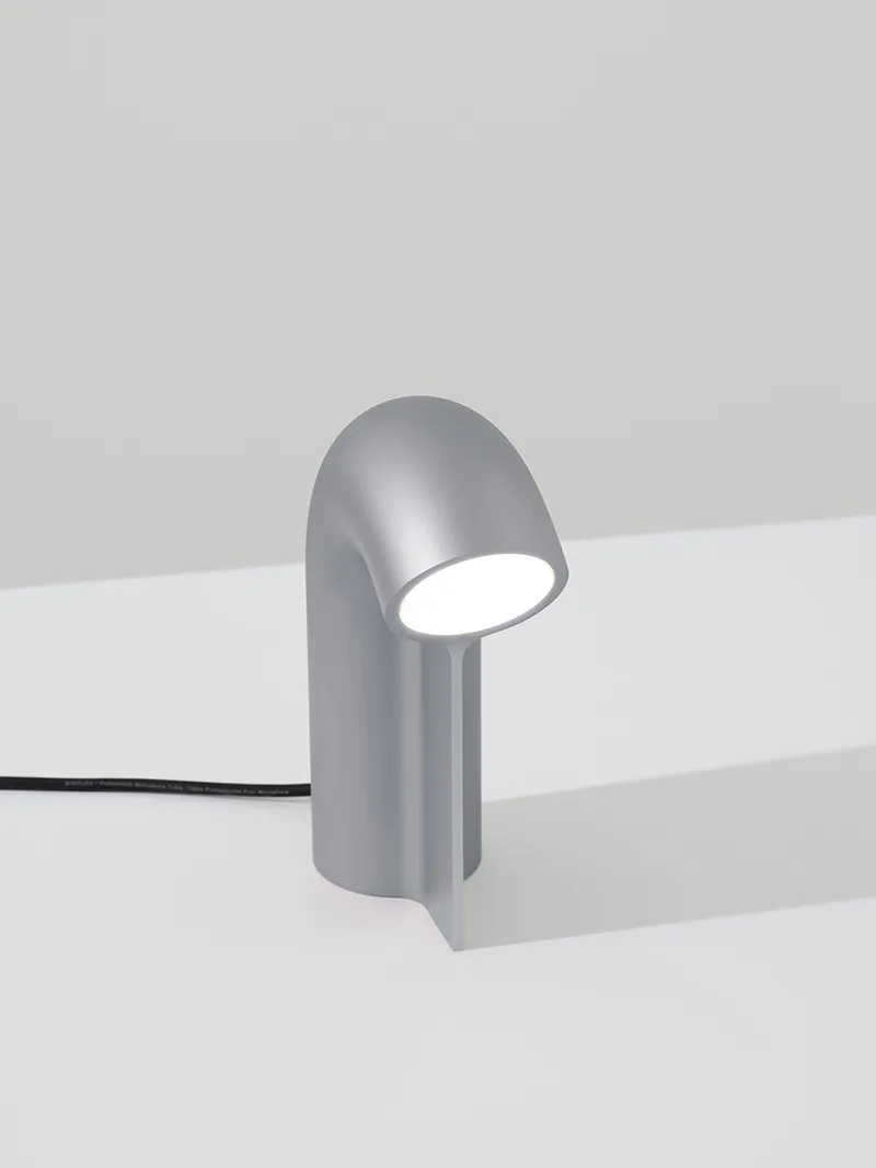 Tactility was premier in the creation of the “Stutter” Light. The “flashing” or support fin functions as a thick delicious tab to pinch and point the light in a direction. The teardrop cross-section of the main body is intended to entice hands and fingers to fondle curves and transitions.