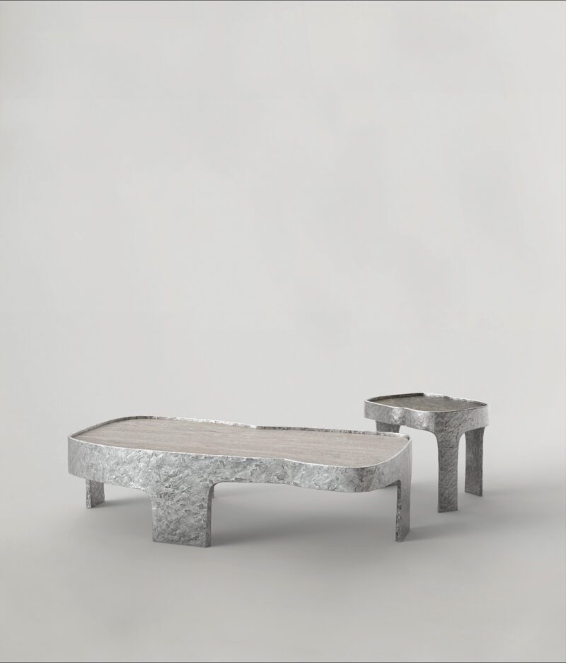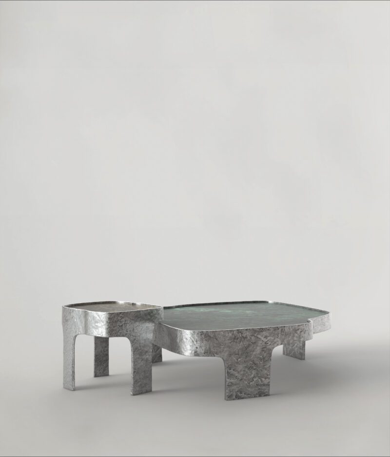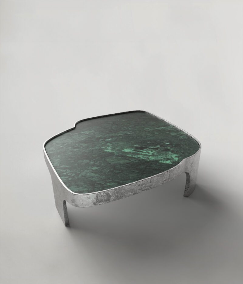 Sumatra V1 is a 21st Century side table made by Italian artisans in aluminium with an extraordinary Green Guatemala marble plane. It is part of the collectible design language Sumatra that has been developed by the Edizione Limitata’s art research team in Milan. The object ground its elegance in the contrast between the smoothness of the stone and the materic texture of the alumium body.
