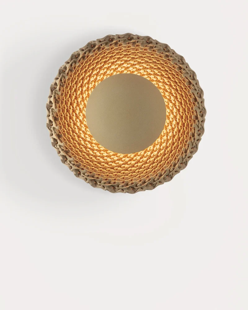 Inspired by the complex forms of the sunflower’s inner disk flowers, the Aureole Collection is an ode to nature’s intricate beauty and a testament to the studio’s biophilic design principles. The aim was to explore spiraled structures that intertwine with each other, folding and curving to create layers of depth. Each lamp has its own unique surface geometry to distribute and diffuse light and shadow in different ways.
