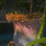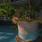 This vibrant flower pot or planter, crafted by the Romanian-based UAU Studio, features a gradient of pastel multi-color—a captivating fusion of hues that infuses vitality into any space. The dimpled texture adds a tactile and multi-sensory dimension to its visual allure. Whether placed indoors or outdoors, this flower pot serves as a charming accent piece, bringing a touch of coastal and boho-chic whimsy to your home or garden.