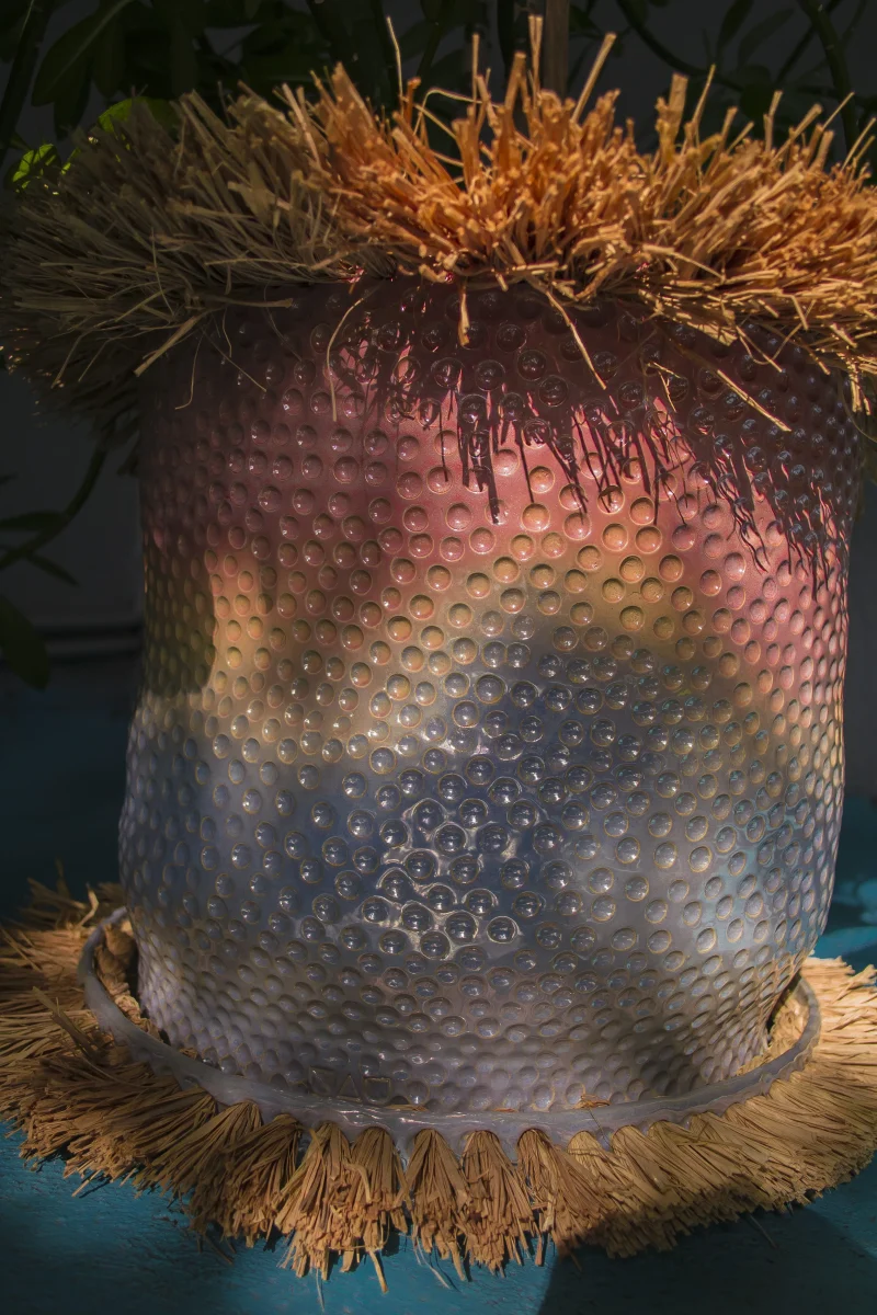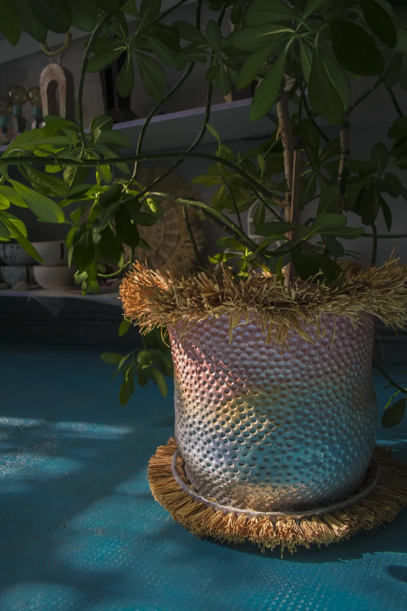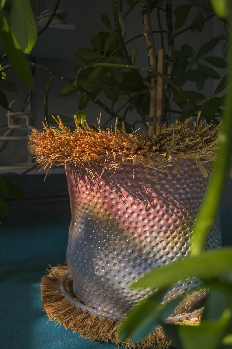 This vibrant flower pot or planter, crafted by the Romanian-based UAU Studio, features a gradient of pastel multi-color—a captivating fusion of hues that infuses vitality into any space. The dimpled texture adds a tactile and multi-sensory dimension to its visual allure. Whether placed indoors or outdoors, this flower pot serves as a charming accent piece, bringing a touch of coastal and boho-chic whimsy to your home or garden.