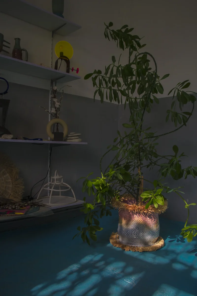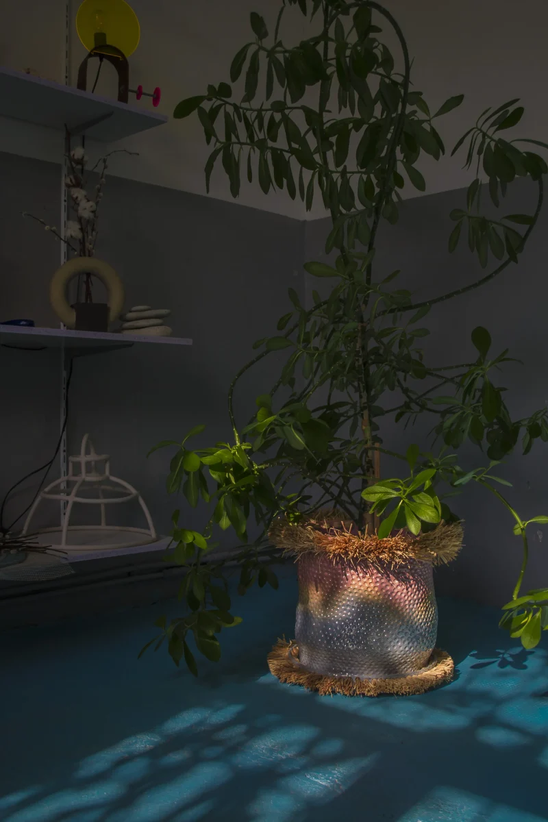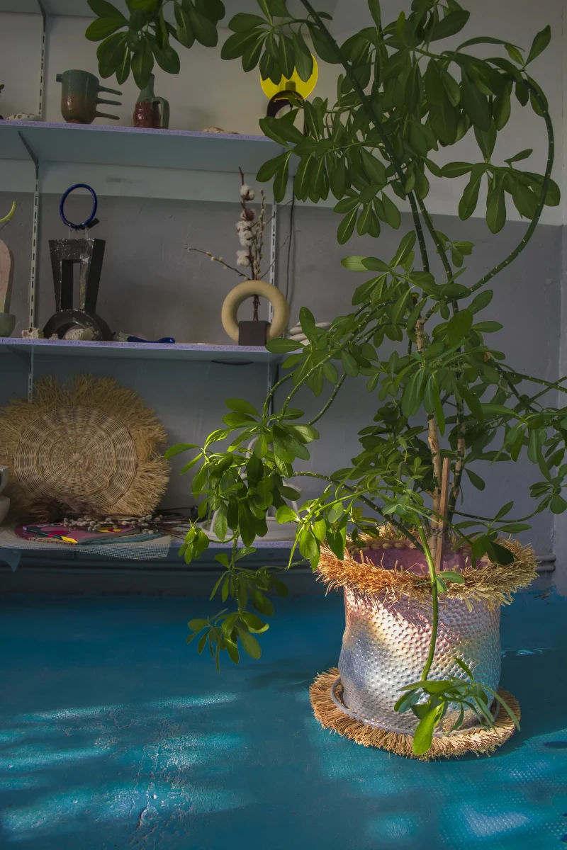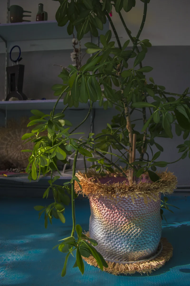 This vibrant flower pot or planter, crafted by the Romanian-based UAU Studio, features a gradient of pastel multi-color—a captivating fusion of hues that infuses vitality into any space. The dimpled texture adds a tactile and multi-sensory dimension to its visual allure. Whether placed indoors or outdoors, this flower pot serves as a charming accent piece, bringing a touch of coastal and boho-chic whimsy to your home or garden.