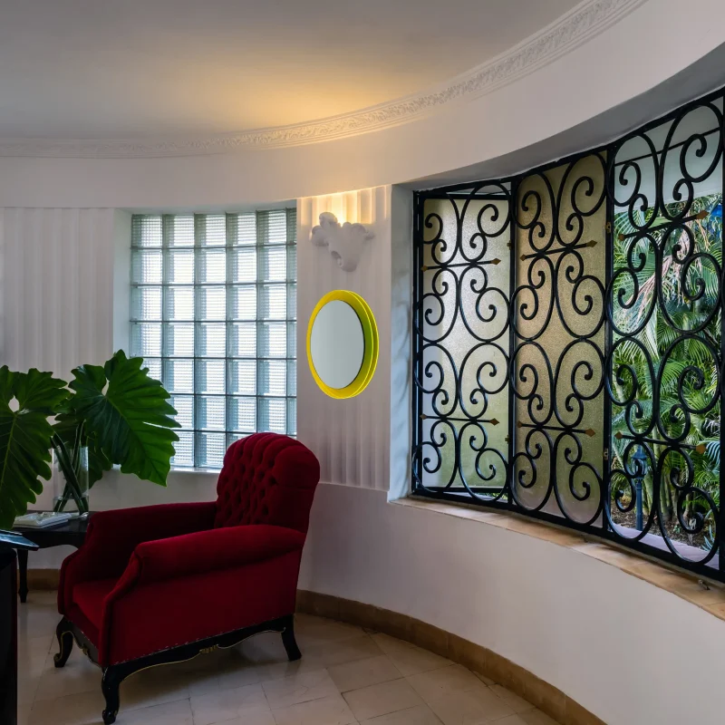Acrylic Conceptual design Designing for the future Eclectic Entryway Living Room Midimalism Midimalist Neon Plexiglass Radical Design Round mirror Space Age Wall object Wallmirror