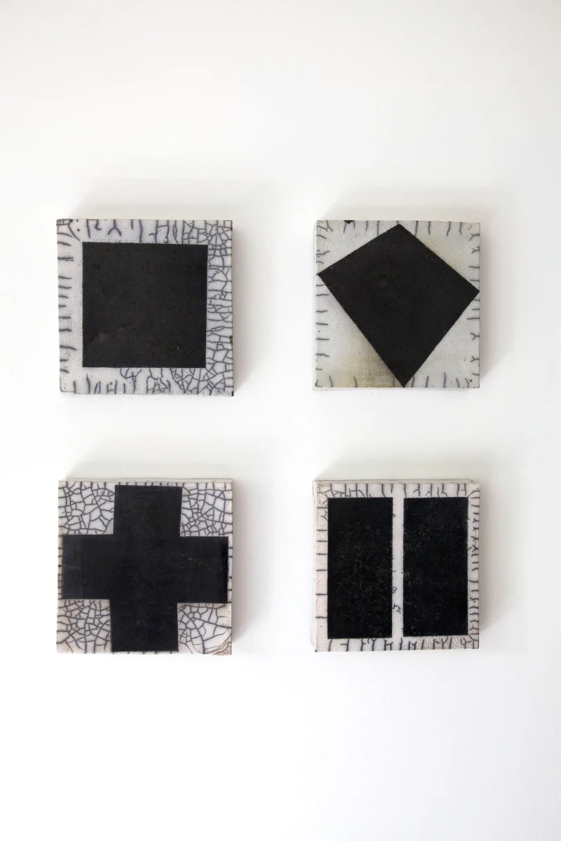 abstract ceramic series abstract wall decor black and white ceramics black and white tile ceramic abstraction ceramic geometric forms Ceramic tiles ceramic wall art Ceramic wall piece ceramic wall pieces Contemporary Ceramic Art controlled smoke ceramics elemental forces in art Entryway geometric abstraction geometric ceramic design Geometric decor handmade ceramic tiles Kazimir Malevich tribute Living Room minimalist ceramic art modern raku technique modern wall sculpture post-firing reduction raku ceramics raku crackle effect raku firing process set of tiles smoky ceramic surface stoneware tiles suprematism Suprematism inspired Suprematist Four Wall hanging art Wall piece Wall tile Wall tiles Walldecoration Wallhanging Woman Made