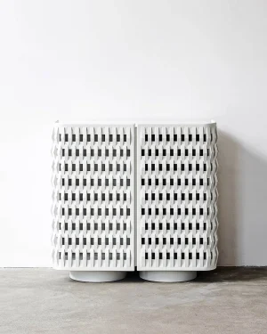 Revisited baskets with aerial outlines, the steel wire takes itself for wicker. Like a suspended bridge, the repeating lines radiate from the center and produce a graphic and sophisticated drawing.