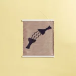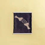 Suspended in a wooden magnetic frame, this textile wall piece captivates with its shiny, colour-changing surface and woven-like optic, achieved through a unique yarn inlay technique. Inspired by the “Temperance” tarot card, the design reflects playfulness, movement, and harmony, making it a modern addition to any home decor collection.