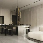 Brushed, rippled, or hammered surfaces interact with lighting, creating layered reflections that shift throughout the day. The result is a quiet rhythm of presence, both architectural and poetic.