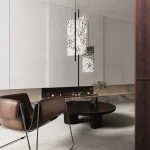 SVITLOTIN is a sculptural lighting collection by SVITANOK that explores the relationship between light and memory, between solid form and the shadows it casts. Each pendant embodies a state of transformation: a static silhouette animated by the movement of light across textured steel.