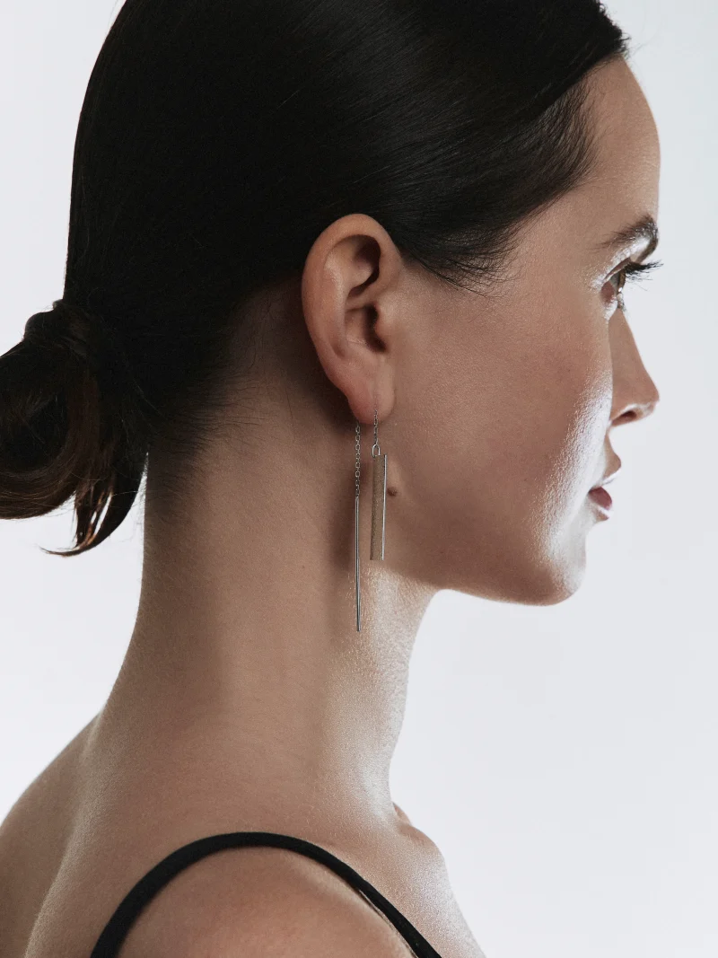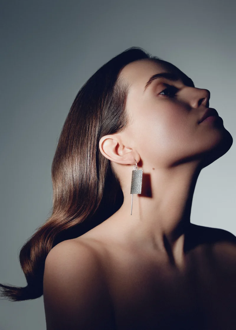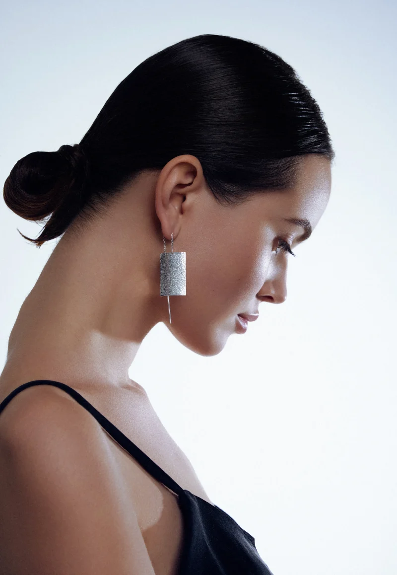 Pure geometric figures build elegant jewellery. The final result is a lightweight design out of 925 sterling silver or white gold, a solid, gracefully sustainable materials