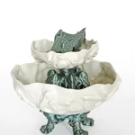 The “Swan” Centerpiece is made by scanned details of the benches that can be found alongside the Albert Embankment, in London. The top part is a printed miniature of the bench’s side itself. The bottom part is an elaborate pattern created by multiplying the swan’s head, while the base is created using the bench’s lion feet.