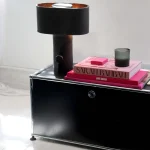 The T-Top lamp is a small, brutalist-inspired table lamp, perfect for bedside or accent lighting in larger living spaces, created by Streicher Goods in Brooklyn, NY.