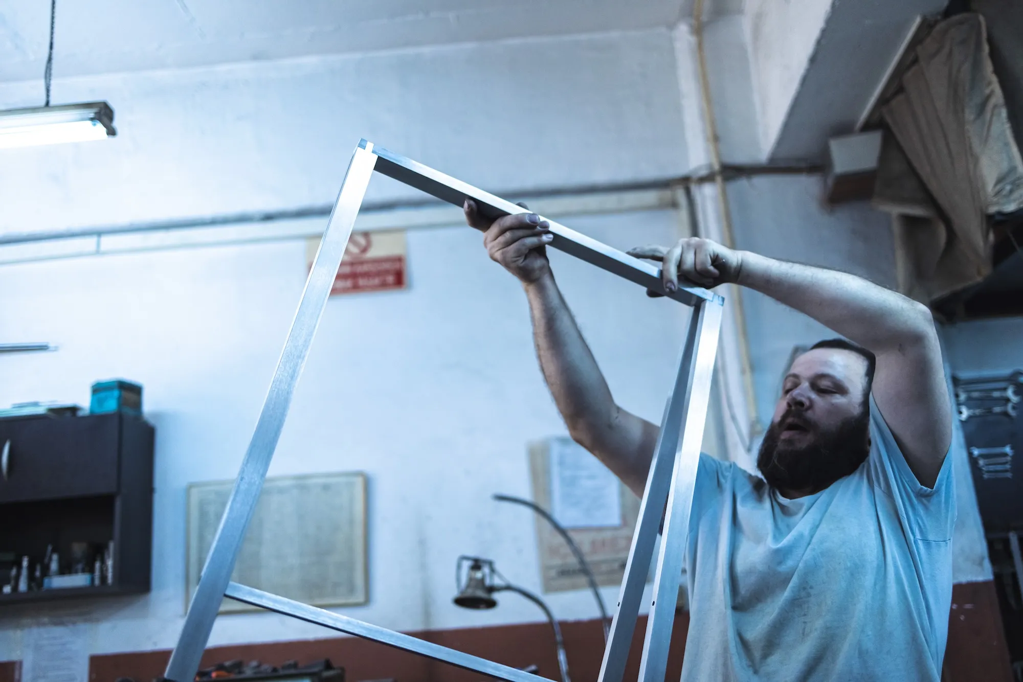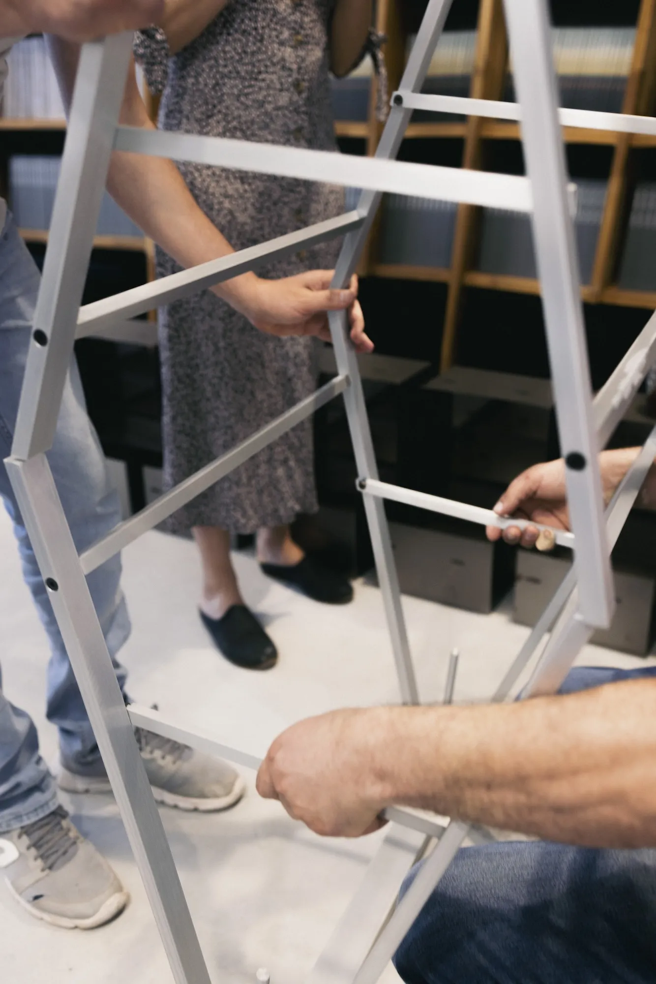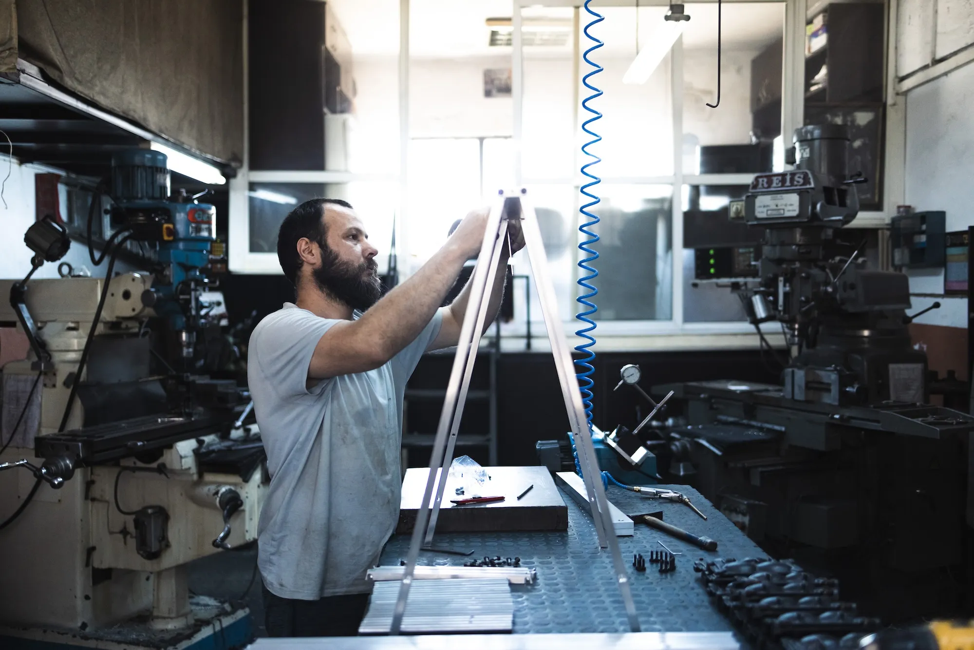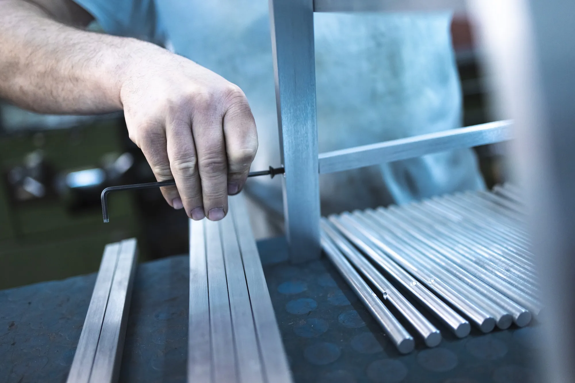 T1 is made out of solid, high-caliber aluminum blocks that are first milled and then refined with traditional manufacturing methods such as metal lathe. The table was conceived in partnership with local artisans. T1 was first produced for the “Instructions” exhibition.