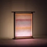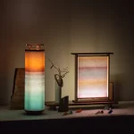ambient interior lighting Ambient lighting Andon lamp architectural opening calm atmosphere Candy Design color projection colorscape contemplative home decor contemporary lantern Cozy Living cylindrical landscape lamp Design for Doing Less Design object designer tabletop lamp diffused glow lamp diffused light handmade artisanal lamp horizon horizon layers Japanese aesthetic Japanese culture of light Japanese-inspired lamp Japanese-inspired lighting layered landscapes light dialogue material warmth meditative lighting design Mid Century Modern Mid Century Modern Living Room Minimal design overlapping forms poetic light ritual object Sculptural lamp serene lighting seuil light shimmering surface soft glow spatial threshold spiritual home accessories torii TORII lamp traditional Japanese furniture inspiration walnut core lamp walnut frame washi paper lamp washi paper table lamp
