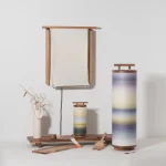 ambient interior lighting Ambient lighting Andon lamp calm atmosphere Candy Design color revealing colorscape contemplative home decor contemporary lantern Cozy Living cylindrical landscape lamp day night lamp Design for Doing Less designer tabletop lamp diffused glow lamp handmade artisanal lamp horizon horizon glow Japanese culture of light Japanese Inspired japanese lantern Japanese-inspired lamp Japanese-inspired lighting meditative lighting design Mid Century Modern Mid Century Modern Living Room paper cylinders poetic lighting ritual light Sculptural lamp serene light soft radiance spiritual home accessories tabletop lantern tactile paper torii torii gate TORII lamp traditional Japanese furniture inspiration walnut core lamp walnut frame warm illumination washi paper washi paper lamp washi paper table lamp wooden structure zen design