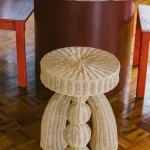 Reflecting the transformative journey of an insect’s metamorphosis, the stool’s uniquely shaped legs are artfully crafted to symbolize the different stages of change, hence the name ‘Pupa’. The tactile surface is expertly woven from natural wicker fibers, while an internal metal framework ensures the stool’s form is matched by function, providing durable support and stability.