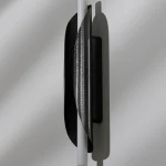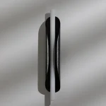 The soft curvature of the rolled metal both conceals and accents the light source, resulting in a wall fixture that is interesting even when it’s not lit. When illuminated, the concave interior glows brilliantly and the negative space between the two ends of the ‘taco’ is activated. When switched off, the object acquires a more sculptural character thanks to its vertical, tubular shape and the convex surfaces of its two wings that catch and reflect light from their surroundings.