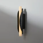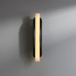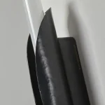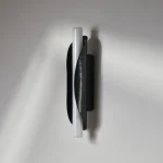 The soft curvature of the rolled metal both conceals and accents the light source, resulting in a wall fixture that is interesting even when it’s not lit. When illuminated, the concave interior glows brilliantly and the negative space between the two ends of the ‘taco’ is activated. When switched off, the object acquires a more sculptural character thanks to its vertical, tubular shape and the convex surfaces of its two wings that catch and reflect light from their surroundings.