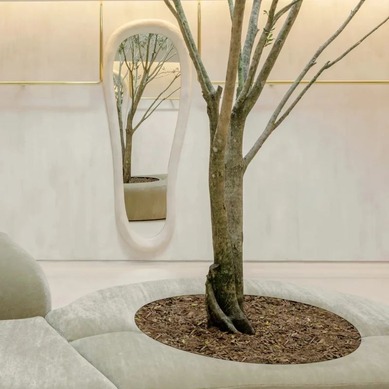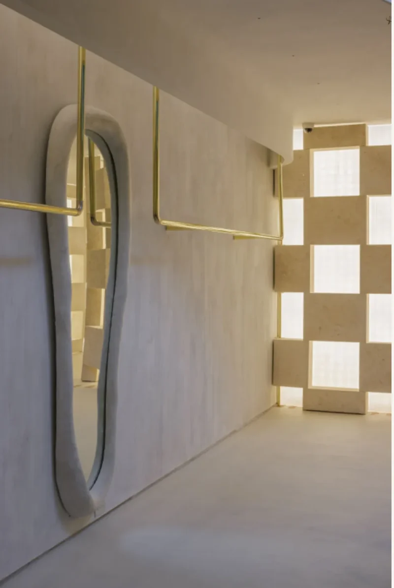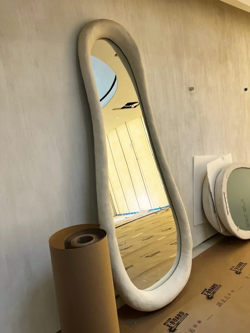 The Tadelakt Mirror is water-proof, and can easily be cleaned using a soft cloth or sponge.