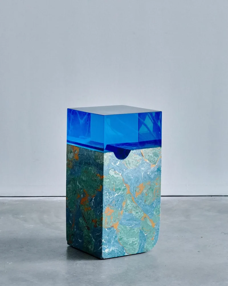 Two mirror halves (like the Yin and Yang) together create a single solid, in harmony as in a love story. The Scagliola technique was invented in Carpi ( Martina’s Italian hometown) and then spread around the rest of Italy, especially Florence that made it popular during the 17th century. The use of this technique is designer Martina Guandalini’s personal tribute to her Italian roots.
