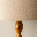 Turned natural parota wood base with matte finish, and sturdy lampshade with fiberglass and linen.