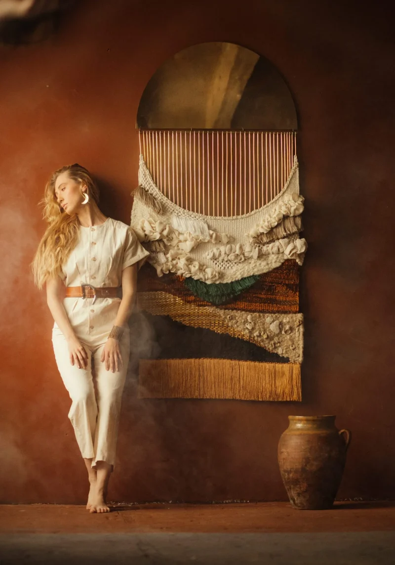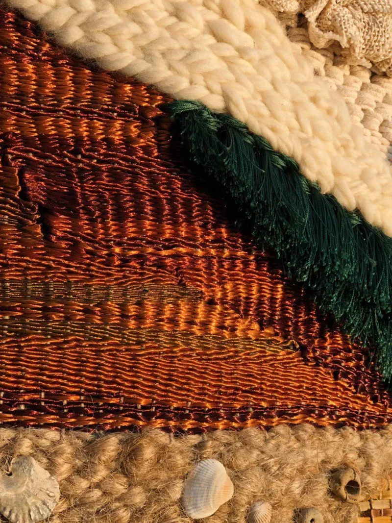 A tapestry that represents the power and glory of Ukrainian earth. We’ve been exploring our past to recover Ukrainian craft techniques and bring back the protection of the environment. First of all, the wall tapestry Nenka (Mamma) is a symbol of fertility, a guardian of a home and an object of power. The tapestry is handmade and illustrates the essential resources of our land. The whole concept of the tapestry is based on the parallels between the natural resources and the materials of our product. Ten different materials are used in the work and nature echoes in each of them. We’ve gathered everything that is inherent in our land and knit them together.