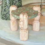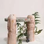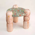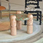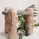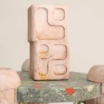 The objects and furniture in the collection are artifacts of a technological world running on auto-pilot. A specially formulated plaster is the primary material, complemented by terrazzo, wood elements, and unique stoneware pieces.