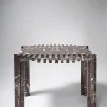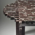 Tavole di Marmi by Berenice Curt Architecture is a furniture collection designed through the exploration of unexpected combinations of shapes that embrace the nature and simplicity of materials, resulting in unique creations. The module is inspired by the Japanese torii, adding a sense of lightness, culminating in a sculptural aesthetic.