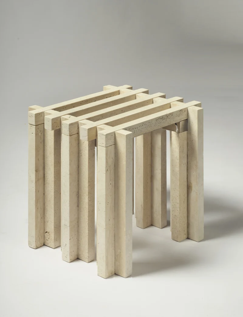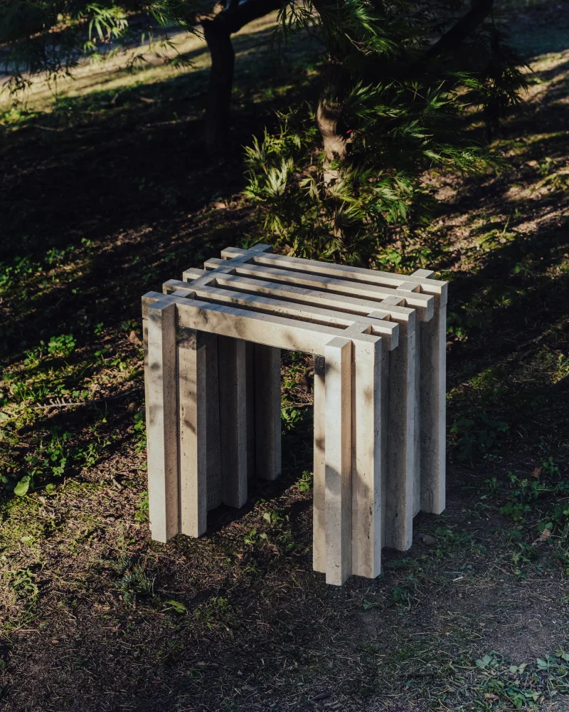 Tavole di Marmi by Berenice Curt Architecture is a furniture collection designed through the exploration of unexpected combinations of shapes that embrace the nature and simplicity of materials, resulting in unique creations. The module is inspired by the Japanese torii, adding a sense of lightness, culminating in a sculptural aesthetic.