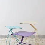 This project is a research on the expressive possibilities of shape and its ability to generate a sensation of movement and action even in complete stillness. The tables are slightly inspired by zoomorphic shapes and are born from an ironic pun on the word furniture, “mobile” in Italian, which means “something that can move”. Therefore, if a piece of furniture can be moved, can tables walk? This playful and ironic aspect is highlighted by the choice of using a wide range of pastel colors to paint the ” Tavoli che camminano “
