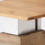 Echoing the design language of the Tbilisi Street Chair, the Tbilisi Street Table by Around the Studio reimagines discarded and weathered furniture found on the streets of Tbilisi, giving new life to oak wood and stainless steel.