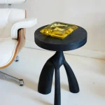 This side table was designed by Lørdag & Søndag in Mexico city and manufactured using oak wood burned by the yakisugi method, by master artisan César Zamorano from Torno Tonalá, in the city of Tonalá, Jalisco.