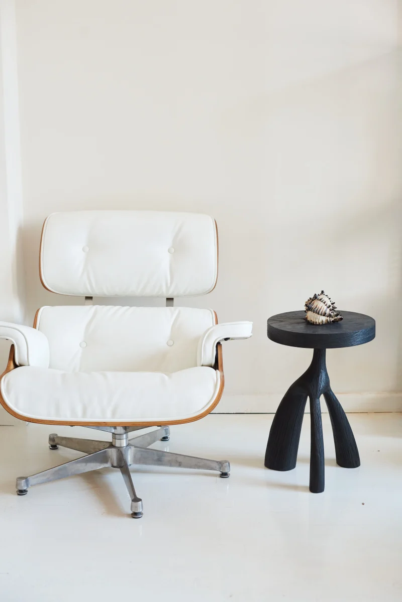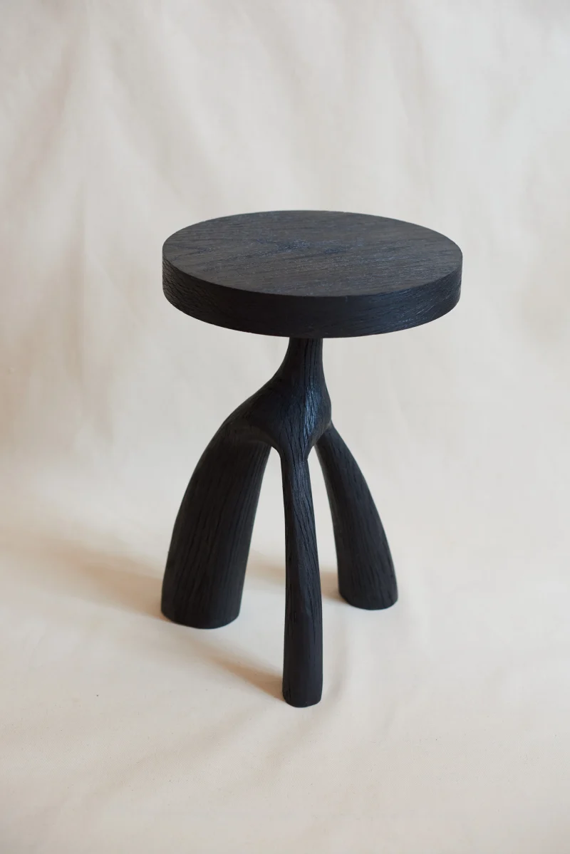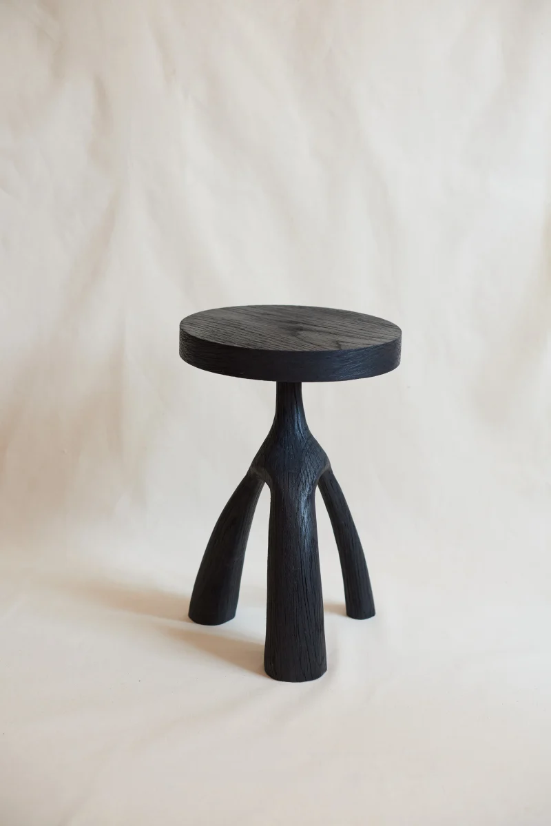 This side table was designed by Lørdag & Søndag in Mexico city and manufactured using oak wood burned by the yakisugi method, by master artisan César Zamorano from Torno Tonalá, in the city of Tonalá, Jalisco.