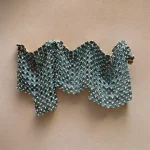 Tela de Barro Arena by Diego Olivero Studio. This piece is an interplay of the studio, manipulating different materials to achieve a textile using a solid material. Each disc is made with high-fire ceramics and then assembled using handspun wool from Guatemala.