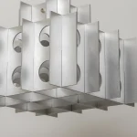 Where Brutalism meets glam. The Tenfold Pendant Light by Luft Tanaka merges the bold, uncompromising forms of Brutalist architecture with the captivating illusions of Op Art. Featuring meticulously perforated metal panels, this pendant plays with light and shadow, transforming functional lighting into a sculptural centerpiece.