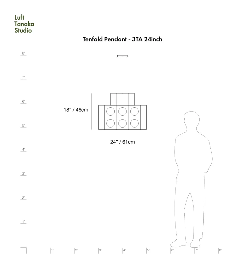 - 24 inch: 24″ x 24″ x 18″ H / 61 x 61 x 45.7 cm H (1x E26/E27 socket)