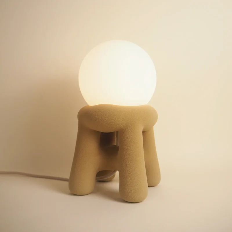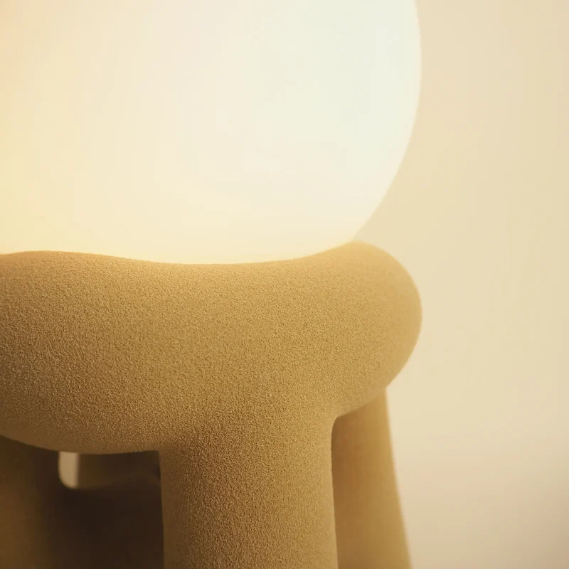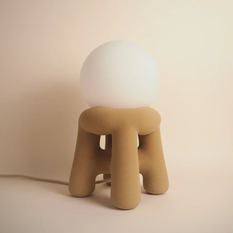 This floor lamp is the biggest of this collection. Is made using the latest 3D printing technology and sand as the material, this method allows the designer to produce in small quantities and to be more unique and environmentally friendly.