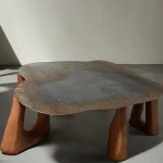 The Terra Table draws its essence from the terra roxa landscapes of Minas Gerais, where the rich, iron-infused clay paints the earth in deep, warm hues. This distinct color and texture echo the table’s design, inspired by ancient native Brazilian sculptures. For Nayara, these forms aren’t just artistic; they carry personal memories—of seeing the vibrant red soil on drives through the countryside and the traditional water filters that brought the earth into everyday life.